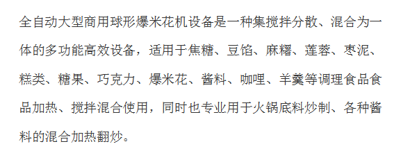 全自动大型商用球形爆米花机设备是一种集搅拌分散、混合为一体的多功能设备.